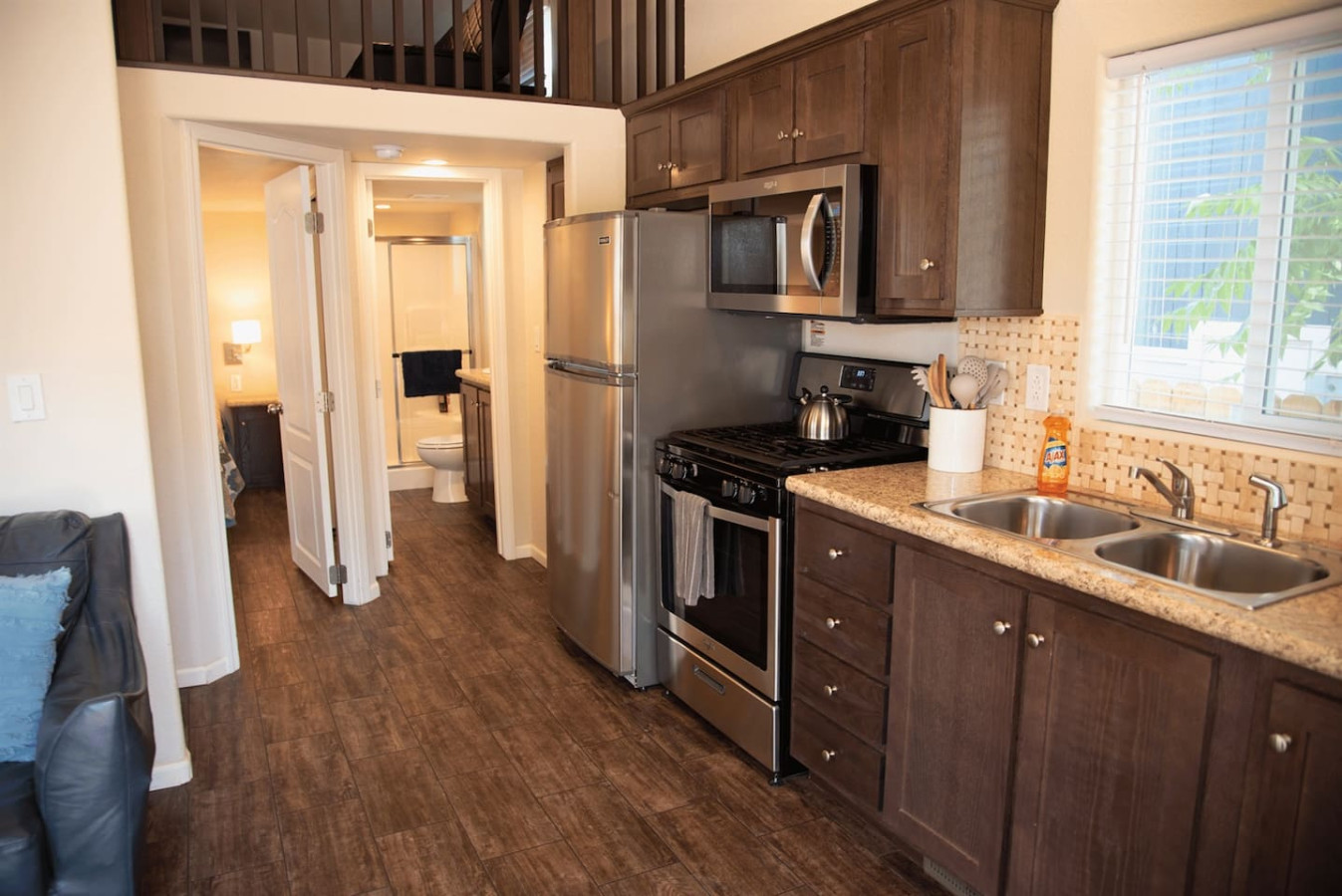 / nightCharmed by stone arches and desert skies? Corona Arch Cabin is a 1-bedroom, 1-bathroom tiny home that sleeps 6, perched just minutes from Arches and Canyonlands National Parks. Cozy yet timeless, it offers a king bed in the bedroom, another king bed in the loft, and a pull-out sofa bed for flexible comfort. Enjoy a full kitchen, climate control, Wi-Fi, and a stargazer’s porch. First come, first serve parking is available for trailers and oversized vehicles. Not pet friendly, but brimming with Moab mystique, this hideaway is your gateway to red rock days and starry desert nights. Book your stay and let the canyon country fill you with wonder.