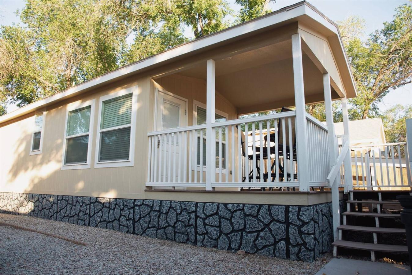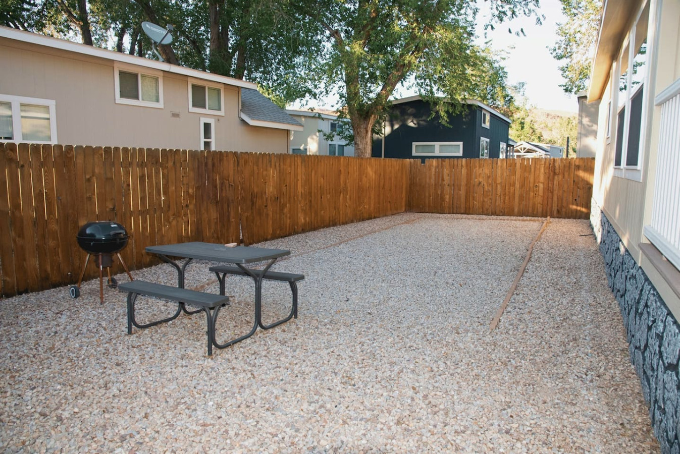 Nice little place in a community of other tiny homes. Clean and well equipped. Great for the price.