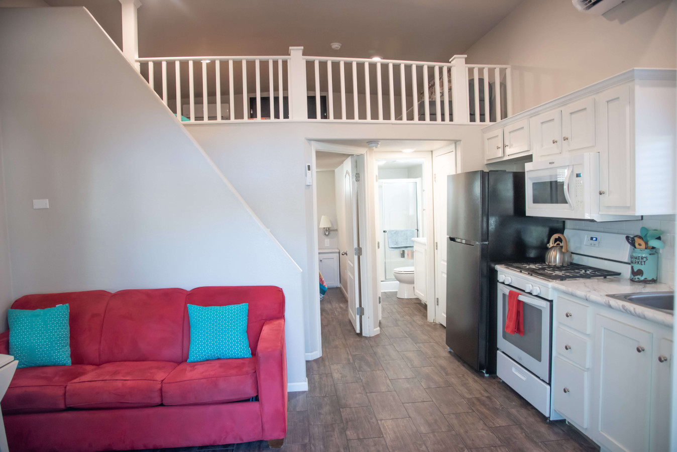 / nightLooking for a desert hideaway where adventure is just outside your door? Pine Tree Arch Cabin is a 1-bedroom, 1-bathroom tiny home named after a natural wonder in Arches. Sleeping 6 with a king bed in the bedroom, a king in the loft, and a pull-out sofa, it’s just a short drive from Arches and Canyonlands. Enjoy a full kitchen, climate control, Wi-Fi, and a relaxing porch. Not pet friendly, but oversized vehicle and trailer parking is available first come, first serve. Reserve your spot and make us your desert home base.