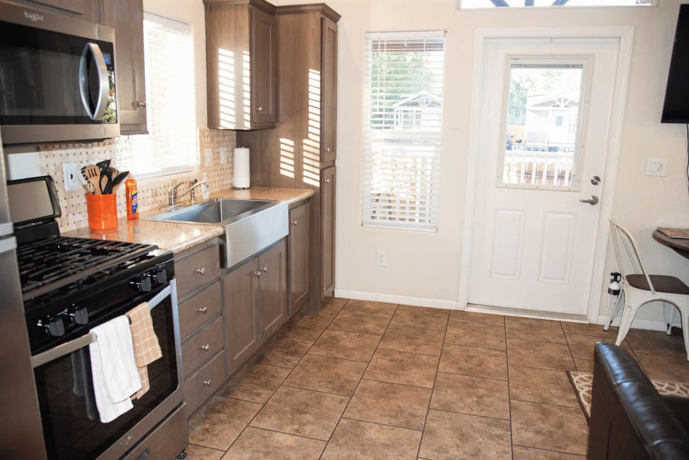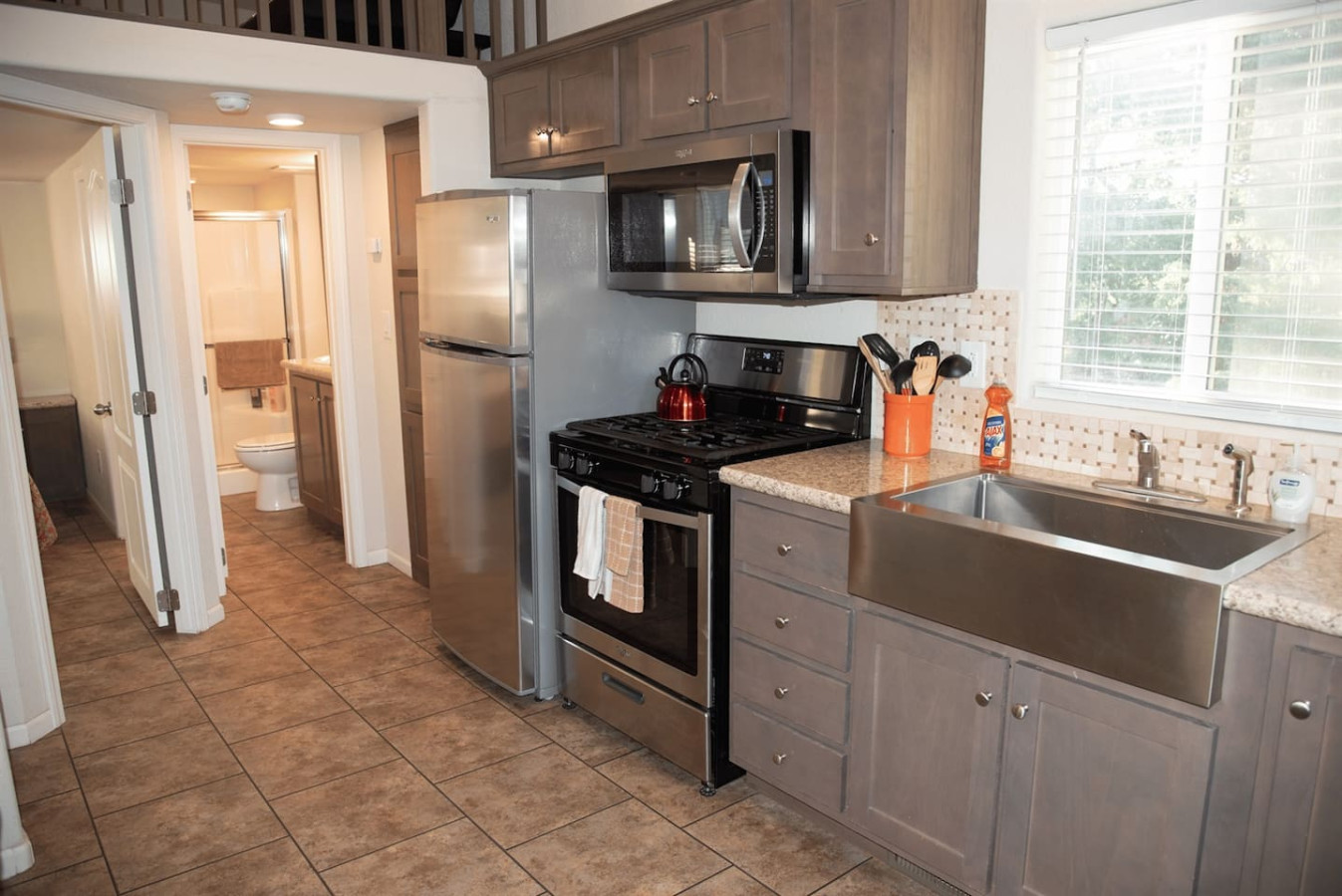 The tiny house was great for our family of four. The loft was perfect for the kids to sleep and my 6-year-old loved it because she was the only one who could stand up in it! Everything was comfortable and well-supplied. It is 1.5 miles outside town which means that it’s quieter and away from the Main Street crowds.