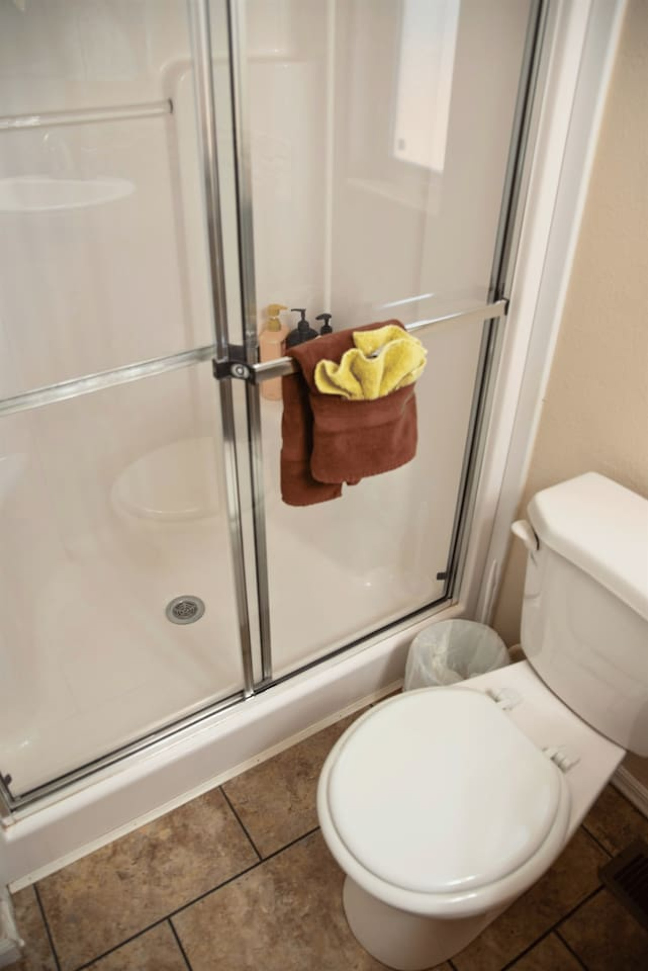 There was a great fence that enclosed the entire tiny home so we were able to lock our bikes up. And there is a small shed.